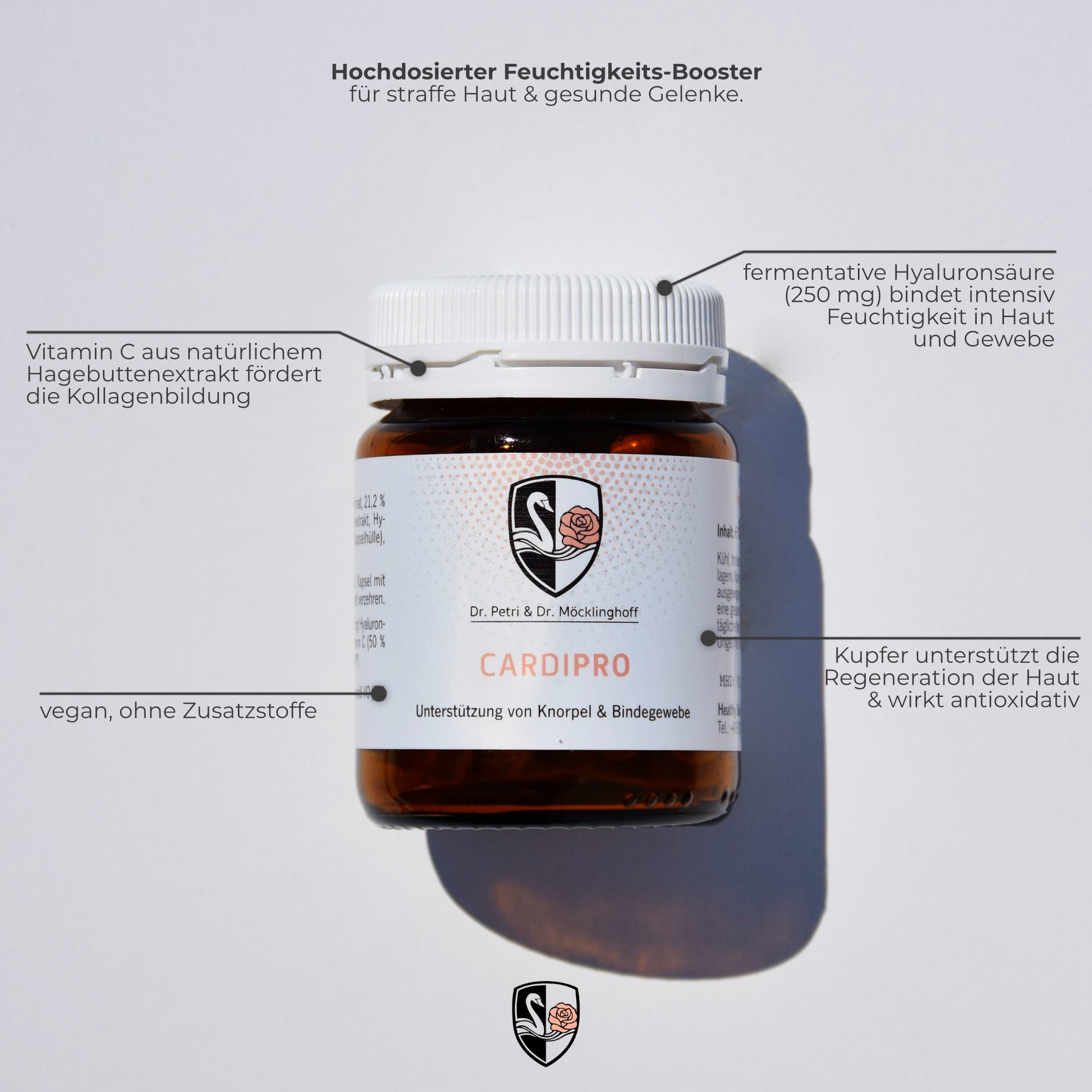 CardiPro kombiniert hochwertige Pflanzenextrakte wie Teufelskralle, Hagebutte und Weidenrinde – bekannt für ihre entzündungshemmenden und gelenkunterstützenden Eigenschaften. Ideal zur Förderung der Beweglichkeit und zur Linderung bei Gelenkbeschwerden.